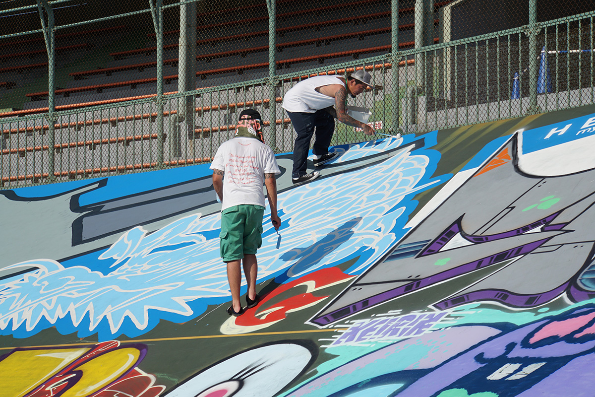 1週400mのバンクのうち300mほどをアーティストの方にペイントしていただきました。