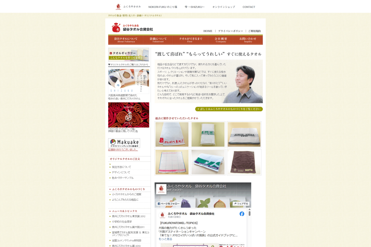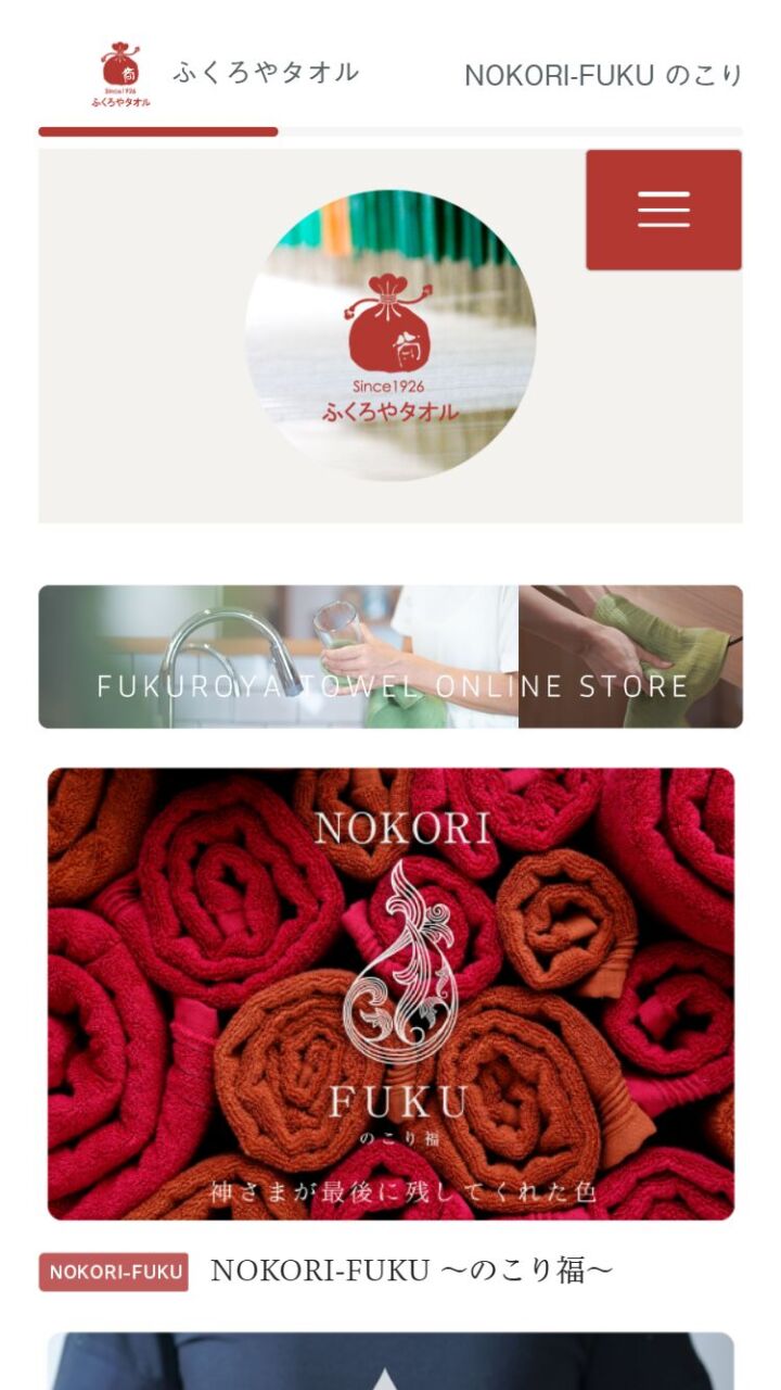 ふくろやタオル(資) 様 スマートフォンでの表示 商品詳細ページ コーポレートサイト 顧客名 袋谷タオル 合資会社 URL https://shop.fukuroya-towel.com/ 制作物 ホームページ 業種 製造・工業 エリア 大阪府泉佐野市