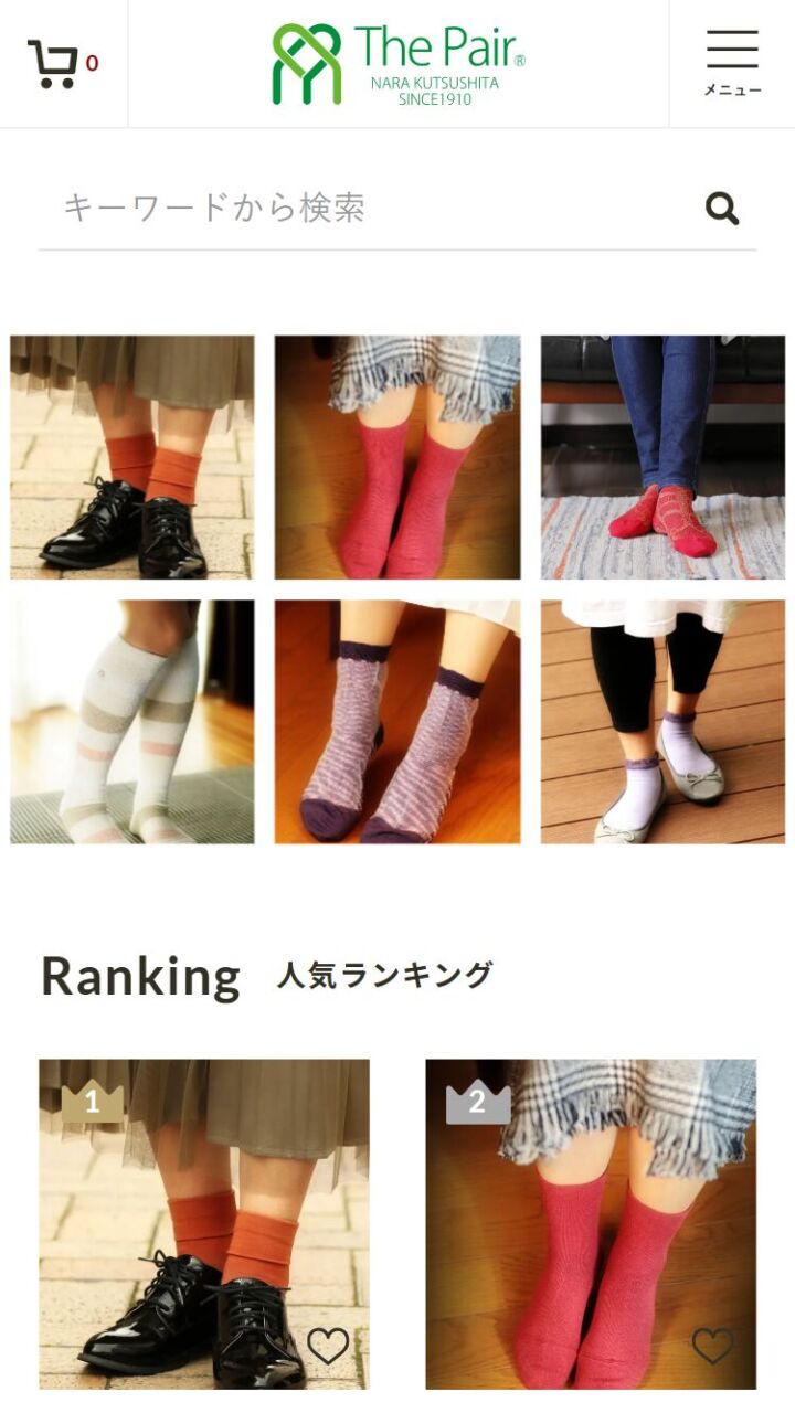 The Pair 様 スマートフォンでの表示 商品詳細ページ 顧客名 奈良県靴下工業協同組合 URL https://the-pair.jp/ 制作物 ホームページ 業種 販売・卸・雑貨 エリア 奈良県大和高田市