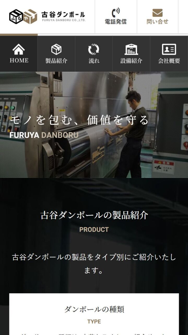 (有)古谷ダンボール 様 スマートフォンでの表示 設備紹介ページ 顧客名 有限会社 古谷ダンボール URL https://www.f-danboru.co.jp/ 制作物 ホームページ 業種 製造・工業 エリア 大阪府泉佐野市