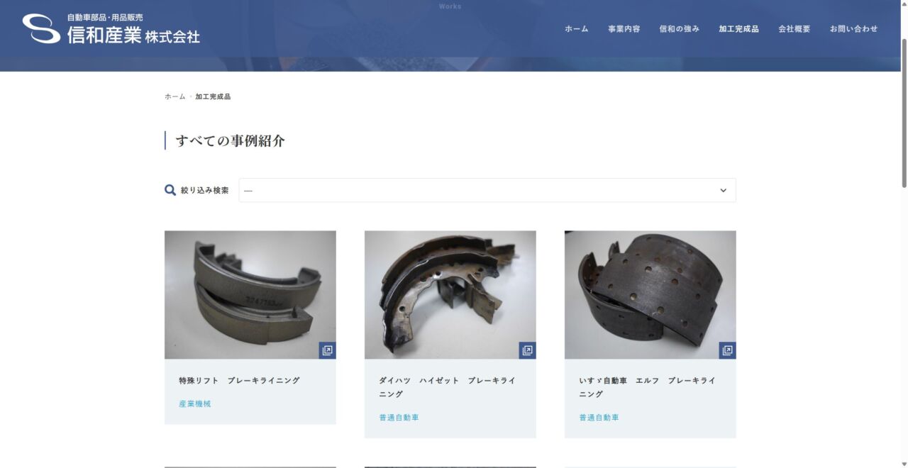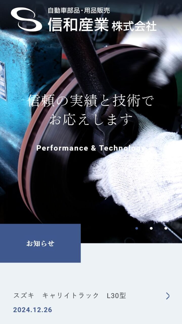 信和産業(株) 様 スマートフォンでの表示 概要ページ 顧客名 信和産業株式会社 URL https://sinwasangyo.com/ 制作物 ホームページ 業種 製造・工業 エリア 大阪府大阪市東住吉区