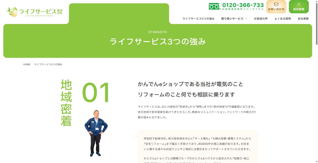 ライフサービス(株) 様 スマートフォンでの表示 アピールページ 顧客名 ライフサービス株式会社 URL https://www.lifeservice.co.jp/ 制作物 ホームページ 業種 電気・通信 エリア 大阪府岸和田市