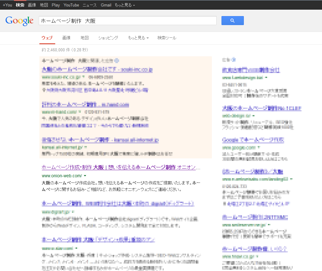 「ホームページ制作 大阪」で第1位!