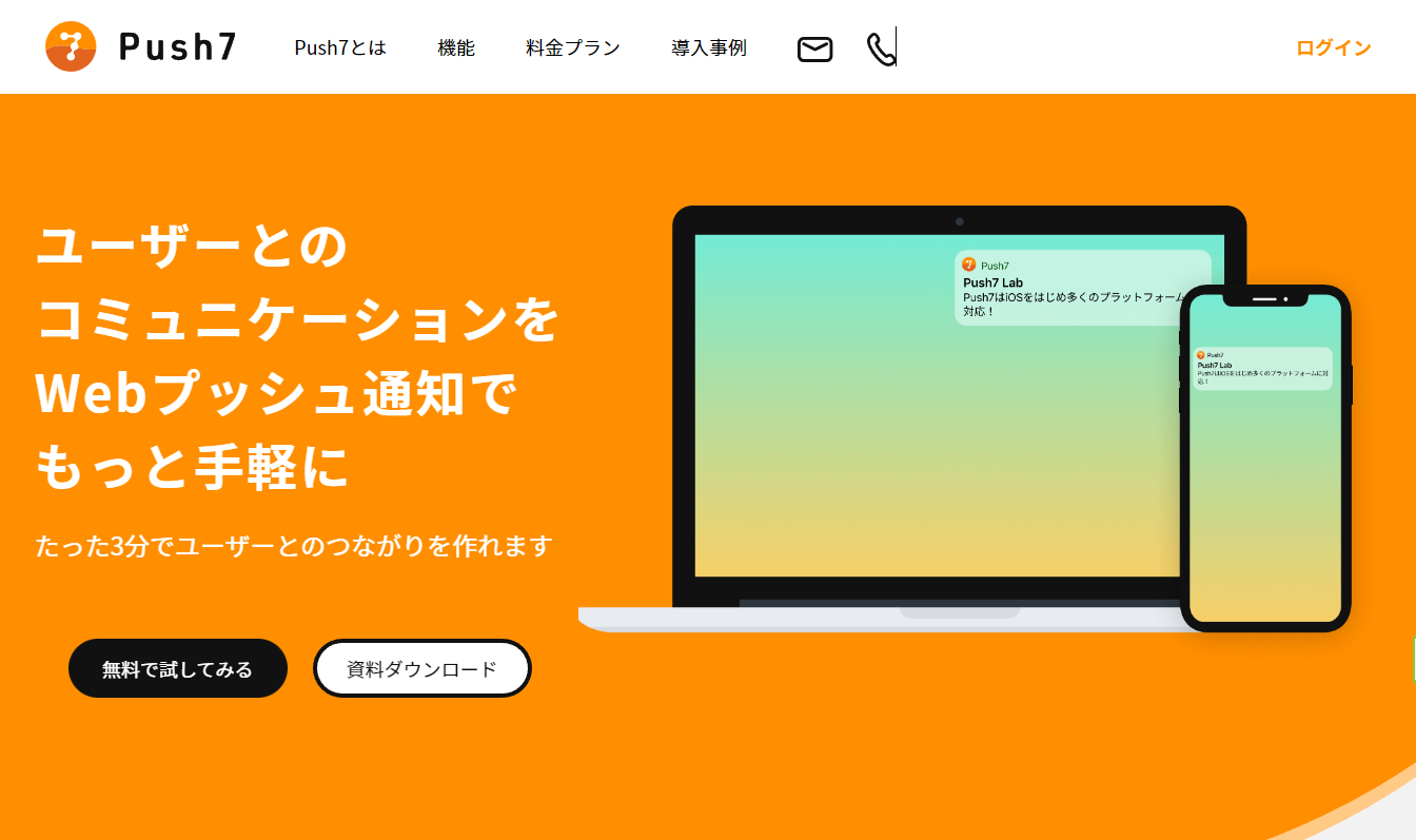 そのプッシュ通知をホームページに導入できるサービスが今日ご紹介する「Push7」です。